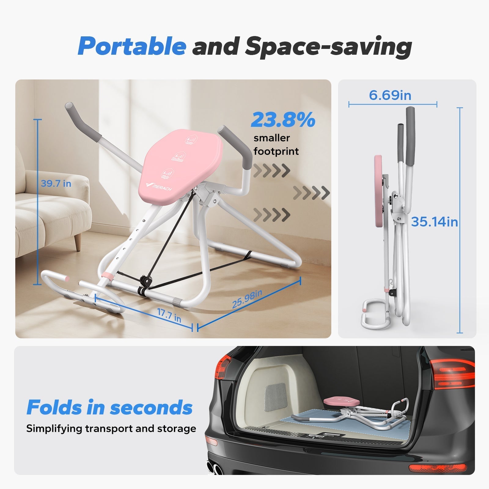 Our ab exerciser arrives 90% pre-assembled for quick setup and folds flat or upright for convenient storage in closets, under beds, or tight spaces.