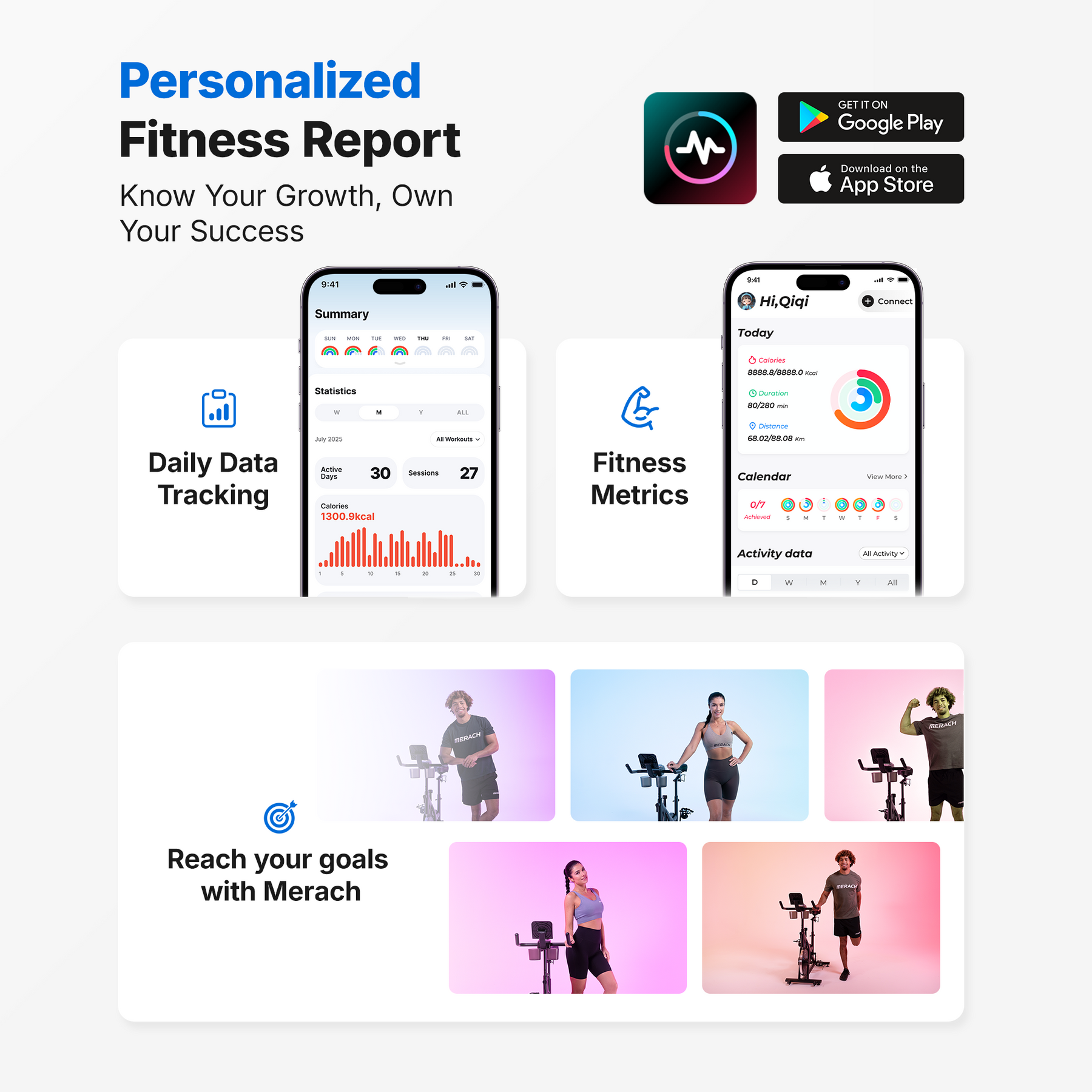 • Real-Time Data & App Tailored Training: The magnetic spin bike comes with the free Merach app and supports third-party platforms like Kinomap and Zwift. You can monitor distance, time, calories, cadence, and resistance level in real time while joining online exercise classes and personalized workout programs that enhance fat-burning results by up to 30%.